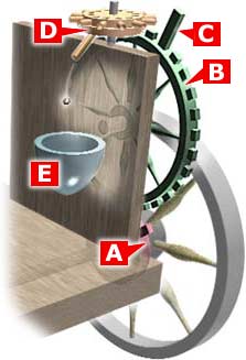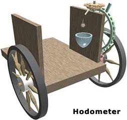 Ez a szerkezet tulajdonképpen az u.n. hodométer őse volt. A kocsikerék agyára lehetett alkalmazni egy súlyos ingát, mely mindig függőleges állásban maradt, és így nem vett részt a kocsikerék forgásában. Kellő fogaskerék áttétellel a kocsikerék fordulatszámát lehetett így számlálni, és minden megtett mérföld (megfelelő fordulat) után egy tárból, melyben golyók voltak, egy golyó esett át egy másik dobozba. Így – csekély pontossággal ugyan – de meg lehetett mérni a megtett út nagyságát.