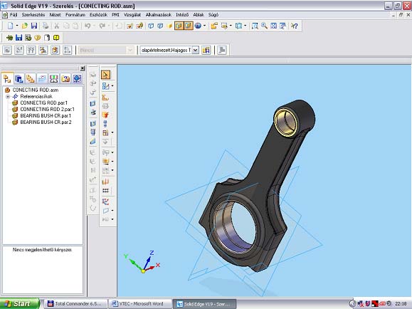 HAJAGOS Tamás, 4. osztályos tanuló, Beszédes József Mezőgazdasági és Műszaki Iskolaközpont, Magyarkanizsa Mentor: Tóth Béla Az V. GENIUS diákverseny eredményei a www.eurovajdasag.info honlapon találhatók. A VTEC megjelenése A VTEC szelepvezérlés a Honda cég fejlesztése. Az elv megalkotása Jeff Palmer nevéhez fűződik, aki a Honda verseny-részlegének, az újításokért felelős mérnöke volt. Első megjelenése 1989-ben volt a Japán belpiacra gyártott Honda Integra Rsi-nél. A motor a B16A nevet kapta. Az 1595 cm3-es motor a főtengelyen mérve 160 lóerőt teljesített. Megjelenésének oka A VTEC motorokkal a Honda célja egyértelműen a teljesítménynövelés volt, mégpedig úgy, hogy a motor lökettérfogata ne növekedjen. Ennek egy másik hatásos célja a motor feltöltése, amellyel szintén megnő a teljesítmény, de nagy hátránya a hatalmas mértékű üzemanyagfogyasztás, és a motor élettartama is nagymértékben lecsökken. A Honda ezzel szemben a motor fordulatszámát növelte meg a versenymotorokban használatos 8000-10000 fordulat/perc értékre. Ezen versenymotorok hátrányos tulajdonsága az alacsony fordulaton jelentkező egyenetlen üzem, és a nyomaték hiánya. A VTEC motorok a hagyományos utcai motorokat ötvözik a high-tech versenymotorokkal. A működés lényege a szelepek vezérlésében rejlik a következő formában: o 4800 ford./perc alatt a hagyományos motorokban használatosakhoz hasonló vezérlőbütykökkel, o 4800 ford./perc felett teljesen más profilú, a versenymotorokéhoz hasonló bütykökkel. Az általam elkészített CAD modell: egy 2.2 literes VTEC motor Célom az volt, hogy minél jobban megértsem e motorvezérlés lényegét, ezért egy 2.2 literes VTEC motor működő CAD modelljét készítettem el. A következőkben a VTEC mechanizmust demonstrálom. A motor modelljét a Solid Edge nevű CAD programban készítettem el, melyet már közel 3 éve használok: ![]() A kép a hajtókar összeszerelését mutatja a programban. A motor elkészítéséhez szükséges információkat az Internetről és az Autodata 2003 programból gyűjtöttem. Az alkatrészek geometriai és anyagtulajdonságai, valamint méreteik megegyeznek az eredeti alkatrészekével. ![]() ![]() ![]() Az általam elkészített VTEC motor lelke: a vezérlés elemei ![]() A vezérlés jellegét a másodperc tört része alatt egyszerűen az olajnyomás segítségével változtatja meg az elektronika. Alacsony fordulatszám tartományban még nincs olaj a rendszerben, a szelephimbákban található csapszegek alaphelyzetben vannak: ![]() Amikor a motor átlépi a 4800-as fordulatszámhatárt, a vezérlő elektronika megnyit egy elektromágneses szelepet, és az olaj nyomásának hatására a csapszegek összekötik a középső szelephimbát a két szélsővel. A középső vezérlő bütyök átveszi a külsők szerepét, ezzel teljesen megváltozik a működés jellege. ![]() A teljes motor ![]() Összegzés E motor megtervezésével bővebb ismeretekhez jutottam a modern belsőégésű motorok működésének megismerésében, valamint teljes mértékben megértettem az autógyártásban egyedülálló VTEC motorok működési elvét. További terveim: a motor többi elemének (kipufogórendszer, befecskendezés és váltó) elkészítése 3D-s modell formájában. |