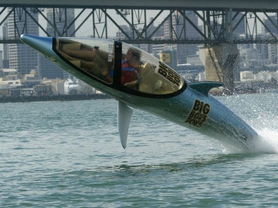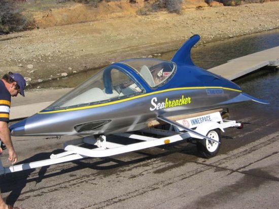1997-ben Rob Innes és Dan Piazza megalapították cégüket, az Innespace-t. És leültek a tervezőasztalhoz. Az alapkoncepció gyorsan formát öltött, és elkészült a formaterv is, csak le kellett nyúlni a delfinek több millió éves modelljét. Két, egymás mögött helyet foglaló utas számára tervezték a könnyű műanyag burkolatot. Azonban több probléma is megnehezítette a munkájukat. Szükségük volt egy erős, átlátszó burokra, amely megvédi az utasokat a víztől. Némi keresgélés után egy vadászgép kabinteteje mellett döntöttek. Az egyik legnagyobb kihívás számukra technikailag az volt, hogy az erős motort belepréseljék a jármű keskeny farába. Végül tízéves fejlesztői munka után megszületett a SeaBreacher, vagyis „tengeri hullámtörő”. A jármű gyorsan halad víz alatt és felett, képes apróbb kiugrásokra, pörgésekre, bólintásokra is. Mint ahogy a delfin ugrál a víz tetején. Végsebessége víz felett 70 kilométer óránként, víz alatt közel 40. A jármű gyakorlatilag elsüllyeszthetetlen. A prototípus után elkészült egy versenymodell is, majd hamarosan jelentkeztek a szériaváltozattal, amely bárki által megvásárolható 48 000 dollárért. Videofelvétel megtekinthető itt. ![]() ![]() |