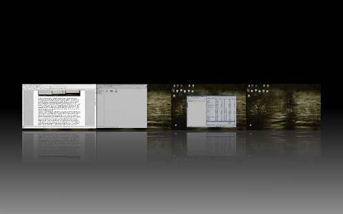 A programváltás, vagyis az ALT+TAB funkció is változott. Ha akarjuk, felsorakoznak az ablakok, mint a kártyák, bal oldalt és jobb oldalt félig elfordítva, míg a kiválasztott ablak a középen van. Ennek a funkciónak nem látom nagy jelentőségét.