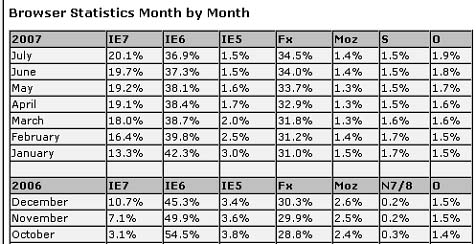 Az eddigi gyakorlattal ellenben az illegális Windows felhasználóknak is elérhetővé vált a legújabb böngésző, az Internet Exploler 7. Érdekes engedmény ez a Microsoft részéről, ugyanis hónapokkal ezelőtt pont az ilyen és hasonló lépésektől várta a legális felhasználói tábor növekedését, habár ez nemigen valósult meg. Valójában e lépést azért volt kénytelen megtenni a Microsoft, mert az új böngészője nem olyan népszerű, mint ahogyan remélte. Úgy gondolta, hogy ezzel a termékével egy csapással pusztítja el a Mozillát és az illegális Windows felhasználókat is. Azonban e lépése nem járt sikerekkel, mint ahogyan azt a statisztikák is tanúsítják, a Firefox továbbra is növeli részesedését a piacon (lassan de biztosan), ugyanakkor a lyukacsos IE 6-ost nem sikerült leváltani az új verzióval, a felhasználók - a legálisak is - kitartanak a régi mellett, ami a Microsoftnak probléma, mivel a vártakkal ellentétben továbbra is sok erőforrását foglalja le a régi hibák foltozása. Így már az sem baj, ha illegálisan használják termékét, csak szabaduljanak már meg tőle, amíg a statisztikák ilyen rossz eredményeket mutatnak az IE7-ről, nem mondhatják, hogy nem támogatják azt tovább, nincs rá szükségük a felhasználóknak.
