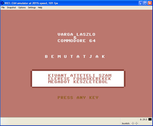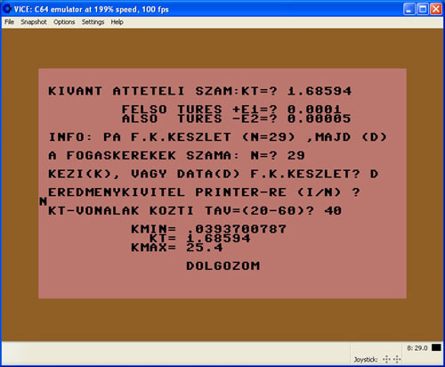 1. rész 2. rész 3. rész 4. rész 5. rész 4.5.) A DÖNTÉS: (fejezet folytatása, az előző 5. részből: Fókusz 41. szám, 2008.06.02.) … Ha nem is a földön hever a megoldás, de előttünk, a „Fókuszban” leközölt „Ifjúsági Bolyai Pályázat” –ban: http://www.fokusz.info/index.php?cid=1277750475&sid=1568912702 Igen. Mert: a jelenségek sokasodását megfékezni nem kurrens és nem is mindig lehetséges a mai „felgyorsult” világban, ahol csak jönnek, érkeznek, szaporodnak, tolakodnak, … . A rászánt időt bővíteni, tágítani, ahogyan Einstein fogalmazta meg, úgyszintén nem kurrens, fokozatos lemaradást eredményez, idővel. Ajánlatos tehát, összetettből minél gyorsabban dönteni, de PONTOSSAN. Ehhez pedig nélkülözhetetlenül ismerni kell a jelenséget (ha természetit, ha fogalmit). Leírásához szolgálhat a klasszikus szöveges forma (verbális modell), folyamatábra, gráfok logikai modellje, de legpontosabb a MATEMATIKA nyelvezetű MODELL. Ki elolvasta a pályázatot, most számadást tehet, miért is kell a környezetünkből felismerni és modellezni a legkülönbözőbb jelenségeket, ha lehetséges akár matematikai modellt felállításával. Mert ez lehetővé tenné a számítógép bevetését, mind hatékony munkaeszközt, pontosságával és nem utolsósorban gyorsaságával. Számára érthető nyelvezeten, kódsorokban (programba) foglalni a jelenség folyamatábrájának paramétereit (mutatószámait) és ez által VEZETHETŐVÉ tenni (úgy is mondják irányíthatóvá: termelést, egészségházat, boltot, autót, repülőt, motorkerékpárt, stb.) = gyors, összetett, pontos döntések sorozata = A LEGJOBB DÖNTÉS! Nyomatékosítom állításomat: van, aki még nem próbálta ki a „Need for Speed” autós „játékot”? Esetleg az „IL-2 Sturmovik 1946” WWII szimulátort? Piacértékűek, szórakozásra használatuk lehetséges, de ez harmadrendű a lehetőségek sorrendjében. A másik oldalról szemlélve, az alkotó oldalról, tisztára matematikai modellek = szimulátorok. Ezért is kerülöm a „játék” szót (lásd: „Szülőházam fölött dobbanó szível” 2. rész, 1. lábjegyzékét: http://www.fokusz.info/index.php?cid=1752456410&sid=1238007176&lista=1 ). Létrehozásuk egyáltalán nem volt játék. Igen hasonlóan a megemlített pályázathoz képest, csak terebélyesebb és igen összetett jelenségek modellezésével jöttek létre (például: keréktapadások, széllökések, felhajtóerő a sebesség és szögállások függvényében, stb.), bár (!?) „szabad a vásár”. Ki nem álmodozott volna arról, hogy egyszer „ír egy játékot”? Ilyen egyszerű. Csoportos – egyéni csapatmunka. Sosem késő elgondolkodni azon, vajon csak fogyasztók leszünk, „ha nagyok leszünk”, vagy először alkotók (és vállalkozók), és majd csak ezt követően fogyasztók. A pozitívan előrehaladó erős közösségé váláshoz, szerves részeként hozzá tartozik, hogy kiélhessük szakmaiságunkat és … ezt alapszerűen serkentő környezeti értékelés kövesse (Integral Support System = ISS = Átfogó Támogató Rendszer = Integralna Sistemska Podrška). Csak a véletlenen múlik, talán, hogy az újvidéki Műszaki Egyetem egyik intézetét az IIS rövidítés illeti meg (Institut Industrijskih Sistema = Ipari Rendszerek Intézete = Institute Industrial Systems = IIS), ahol ezt tanítottak velünk az „Ipari rendszerek irányítása” (= Upravljanje Proizvodnim Sistemima) tantárgyban. ![]() Fotó 9. : A Műszaki Egyetem intézetének bejárata, az újvidéki egyetem campus-ában 4.6.) A PROGRAM: Legegyszerűbben megismerhető a program, ha egymásutánban végigpásztázva az alprogramok kódsorain mutatom be eredeti formájában, kísérő rövidebb-hosszabb magyarázattal, megjegyzéssel. 4.6.1.) BEVEZETŐ: A kutatások és az algoritmus alapján a forráskódokat elsőnek egy legendán, a saját Commodore C=64 –en írtam meg, Basic v2.0 programnyelvet használva alapul, amelyre rátelepítettem a grafikus kiegészítő programcsomagot, a Simon’s Basic –et. Így rendelkezésemre állt „teljes” 30Kbyt. ![]() Ábra 21. : C=64 Simon’s Basic induló képernyője Higgyék el, ma ez nevetséges RAM memória mennyiség, de teleírni ezt értelmes kódsorsokkal ma sem egyszerű. Sok. Talán itt lehet érzékelni a Software házak és csapatok óriási munkáját. Köztudott, a mai számítógépeknél a nagy memória igény a true color grafikától ered, reálidős filmszerű kivetítéssel. Ide sorakoznak az óriási adattárak és jelenség MODELLEK kezeléseinek igényei is. Például, a felsorolt „könyvmennyiségeket” (lásd 3. rész, h. pontját) már a MS Office táblázatkezelő Excel program sem tudja zökkenőmentesen lekezelni! „Csak” 65 536(sor) x 256(oszlop) = 16 777 216 adat cellahely lett előrelátva benne. Az adatok arányos elosztódásnál, ami most nem a „mi” esetünk, elegendő is lenne. A fő korlát a csak maximálisan 65 536 sor használata! Erre még visszatérünk, a C=64 -et követően. Természetesen, eszem ágába sem jutott manapság Commodore C=64 komputeren kódolgatni. Erre a PC konfiguráció kitűnően megfelel, a WinVICE-1.22 emulátor (utánzó) programmal. Letölthető (download) ingyenesen a következő nett címen: http://www.viceteam.org/#download Megjegyzés: Összehasonlításként, ma 2008–ban, 600 euróért mesegépet lehet vásárolni, duplamagos processzorral, akár lézeres b/w (fekete/fehér) nyomtatóval. 1985-ben a Commodor alapgép + szalagolvasó + floppy író/olvasó + mátrix 9 tűs indigószalagos A4 formátumú nyomtató = 2100 DEM ≈ 1050 EU. Gyakornoki fizetésem javarésze ráment. És, ennek a visszatekintésnek nem a múlt a célja, hanem a jelen és a jövő. Tehát: a mai lehetőségek többszörösek az akkoriaknak, ezért valóban érdemes csatlakozni projektekhez és pályázatokon, di
