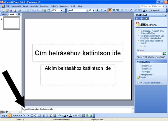 A Jegyzet ablaktábla helyzete a programablakon belül