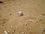 A busmanok szerint ezt a földet Isten csak mérgében teremthette, s a portugál hajósok is hasonló képen vélekedtek. A pokol kapujának nevezték, és mai nevére is méltán rászolgált: Csontvázpart. El lehet e képzelni szánalmasabb végzetet, mint hajótörést szenvedni, majd partot érni, s meghalni a sivatagban? A viharban eltörik az orsó, s a kérlelhetetlen szél és a tengeráramlatok irányíthatatlanul sodorják a hajót, a hajótörött azonban váratlanul megpillantja a ködben a szárazföldet, és azt hiszi, a sors kegyes szemmel tekint reá. – Megmenekültem! – kiált fel, s kimerülten vánszorog ki a part homokjára. Ám nemsokára rájön, hogy a kiszáradás semmivel sem kíméletesebb halál, mint a megfulladás. Valami rossz szellem rászedte a hiszékeny hajóst, hogy Délnyugat-Afrika partjai mentén hajózzon. Most a Föld egyik legdurvább, legkegyetlenebb térségén áll, s választhat, vagy nekivág a végtelennek tűnő sivatagnak és szomjan hal, vagy reménykedik a parton, hátha meglátja egy arra tévedő hajó. S ott pusztul el, mert a hajóra hiába vár… Az élet kialszik... Namíbia sivatagos partja teljes hosszúságában régebbi és újabb típusú hajóroncsokat, állati és emberi csontvázakat rejteget. Némelyikük évekkel ezelőtt közvetlenül a part mentén helyezkedett el, de a sivatag terjeszkedése folytán ma már több méter választja el a víztől. Vannak olyanok is, melyeket már annyira betemetett a homok, hogy csak az árbócuk látszik ki. Hogy mi lett a legénység sorsa? A válasz nem kíván nagy képzelőerőt. Orix antilop szarva Bálnacsont Valamelyik hajótörés áldozata![]() Mivel a parton kevés a település, nem könnyű képeslapot küldeni. Íme egy...