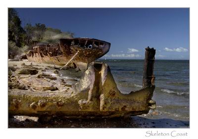 Csontvázpart, NamíbiaAhol az oroszlánok fókákra vadásznakNamíbia sivatagos partja teljes hosszúságában régebbi és újabb típusú hajóroncsokat, állati és emberi csontvázakat rejteget. A busmanok szerint ezt a földet Isten csak mérgében teremthette, s a portugál hajósok is hasonló képen vélekedtek. A pokol kapujának nevezték, és mai nevére is méltán rászolgált: Csontvázpart.