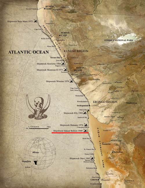 Az Eduard Bohlen nevet viselő hajó teherszállításra szolgált, s 1909. szeptemberében szenvedett hajótörést. A sűrű ködben túlságosan közel úszott a parthoz, és megrekedt. Mára már sokkal messzebbre került a víztől, alsó részét belepte a homok, s a Csontvázpart elhagyatottságának szimbólumává vált.