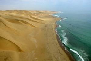 A Föld legrégibb sivataga ![]() A földgömb Namíbia helyzetét mutatja, míg a térképen láthatóak az ismertebb hajókatasztrófák helyszínei és a hajók neve Hullámok mossák a végeláthatatlan homokdűnéketMintegy 120 millió évvel ezelőtt, mikor a déli féltekén elhelyezkedő „szuperkontinens”, a Gondvana elkezdett szétrepedezni, több kontinens keletkezett, a mai Afrika és Dél-Amerika, valamint Ausztrália, Antarktisz és az Indiai-alkontinens. A Nyugat-afrikai keskeny partsávot nyugatról az Atlanti-óceán, keletről pedig a hegyek lejtői határolják. E 2 000 km hosszú és 100 km széles földsáv a mai Namíb-sivatag. Partja ezernél is több hajókatasztrófa helyszíne, mely katasztrófák a kedvezőtlen éghajlati viszonyok számlájára írhatók. Az Eduard Bohlen nevet viselő hajó teherszállításra szolgált, s 1909. szeptemberében szenvedett hajótörést. A sűrű ködben túlságosan közel úszott a parthoz, és megrekedt. Mára már sokkal messzebbre került a víztől, alsó részét belepte a homok, s a Csontvázpart elhagyatottságának szimbólumává vált. A sűlyedő teherhajóA térség éghajlatát legjobban a Benguela-tengeráramlás befolyásolja, ami jéghideg vizet szállít az antarktiszi partoktól Afrika nyugati oldala mellett. Mivel lehűti a felette lévő légréteget, hideg légáramlatot hoz létre, és az év nagy részében köd tornyosul a partmenti vizek felett. A nyár októbertől májusig tart. A hőmérséklet a hűvös és a meleg között ingadozik, kevés a forró nap. A májustól októberig tartó télre jellemző, hogy a hőmérséklet délután gyorsan lecsökken, s éjjel nagyon hideg van, bár a part közelében sohasem sűlyed fagypont alá. A köd reggeltől délutánig megmarad, s erős nyugati szél fúj a part irányába, aminek következtében a víz erősen a hullámzik. A csapadék nagyon ritka, évente csupán 15 – 25 mm, s ez nyáron esik. A pára jelenti az éltető nedvességet. Sivatagi fókák, sivatagi elefántok A gyakori és sűrű ködnek köszönhetően a sivatag élővilága kifejezetten gazdagnak mondható. Még endemikus fajok is nagy számban élnek itt zseniálisan alkalmazkodva a kegyetlen életfeltételekhez. A növényvilág egyik széles körben ismert képviselője a Welwitschia mirabilis. Ez az élő fosszília a levelén lévő millió mikroszkopikus póruson át abszorbeálja a nedvességet. A Commiphorához tartozó fajok zömök, alacsony cserjék, melyek illatos gyantát termelnek, csapadék idején növesztenek levelt, s miután eláll az esőzés, gyorsan megszabadulnak tőle. Jellegzetes növény még az úgynevezett „elefántláb”, vagyis buzogányfa (Beaucarnea recurvata) és a sivatagi tövistök azaz Nara (Acanthosicyos horridus). A Welwitschia mirabilis 2000 évig is él Elefántláb A hasonlat igazán ötletesA Csontvázpart gyakori látogatói a természetfotósok. Számos dokumentumfilm is készült a területen, melyeknek nagyobb része a szélsőséges életfeltételekhez való zseniális alkalmazkodási módokat mutatja be. A gyanútlanokat bizony meglephetik az oroszlánnyomok a homokban. A világon egyedülálló jelenség, hogy ezek a vérengző ragadozók itt fókahússal töltik meg bendőjüket. Tehetik ezt azért, mert a “tenger oroszlánjai” a hideg tengeráramlással szívesen felúsznak Namíbia partjaihoz. Ki hinné, hogy a sivatagi kiszáradt folyómedrek életet biztosítanak a zebráknak, az orrszarvúknak, a zsiráfoknak, vagy a köves részeken élő struccoknak és az orix antilopoknak. Mindannyiuk azokból a talajvízforrásokból oltja szomját, miket a páviánok és az elefántok ásnak ki. Az alkalmazkodás egyik találékony képviselője az antilop. Az óceán felől érkező hideg légáramlatokat testének hűtésére használja fel. Tőlük is zseniálisabb megoldáshoz folyamodott azonban a páragyűjtő bogár (Onymacris unguicularis). Ez kiáll a ködben, hátsó lábaival megemeli testét, és várja, hogy összegyűljön rajta a nedvesség, ami szépen lecsorog a szájába! Páragyűjtő bogár A fókák között sakál szemlélődikA partmenti térségeket a sakálok, hiénák és az atlanti szellemrákocskák tisztogatják meg az elhullott tetemektől. A madárvilág hihetetlenül gazdag, hiszen a hideg víz bővelkedik planktonokban, ami a halak fő eledele. A Namíb-sivatag északi részén különösen védett fajok élnek, ezért nem látogatható. A többi területek szintén védettek, de fogadják a szaffari kedvelőit, bár a belépés nem egyszerű. Engedélyt kell szerezni, s minden szabályt szigorúan be kell tartani. A látogatók kötelesek csoportban menni, és magukkal vinni az előírás szerinti víz- és élelemmennyiséget. Nem vihetnek magukkal semilyen fegyvert, és nem szállhatnak ki a kocsiból, még az ablakot sem tekerketik le. A vezetőnek gondolnia kell a jármű meghibásodása során keletkezhető problémák megoldására, hiszen nem mindegy életveszélyes vadállatok társaságában, fegyvertelenül ottragadni a nagy semmi közepén. Szerencsére azonban időnként találkozni autókkal. Kilépéskor a látogatók névjegyükkel látják el az eltávozásukról szóló dokumentumot. Friss oroszlánnyomok a sivatag homokjábanBájos bennszülöttek A legnagyobb túlélőknek mégsem az állatok vagy a növények tekinthetők, hanem az itt élő emberek. Közvetlenül a Csontvázparttól nyugatra, Namíbia északi részén, az angolai határ mentén él a Himba törzs. Ők megőrizték nomád szokásaikat, kunyhóikat trágya és homok keverékéből építik, kecsketenyésztéssel foglalkoznak. A kecske testének minden részét felhasználják. Igazi túlélők. Életterük a Kaokoföld, ami a legkegyetlenebb életfeltételekkel rendelkezik a térségen. A himba törzs asszonyai kecskebőrből készült köténykét viselnek, kagylókból és fémekből készített ékszerekke