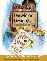 Darwin vagy tervezés? – hirdeti a plakát.